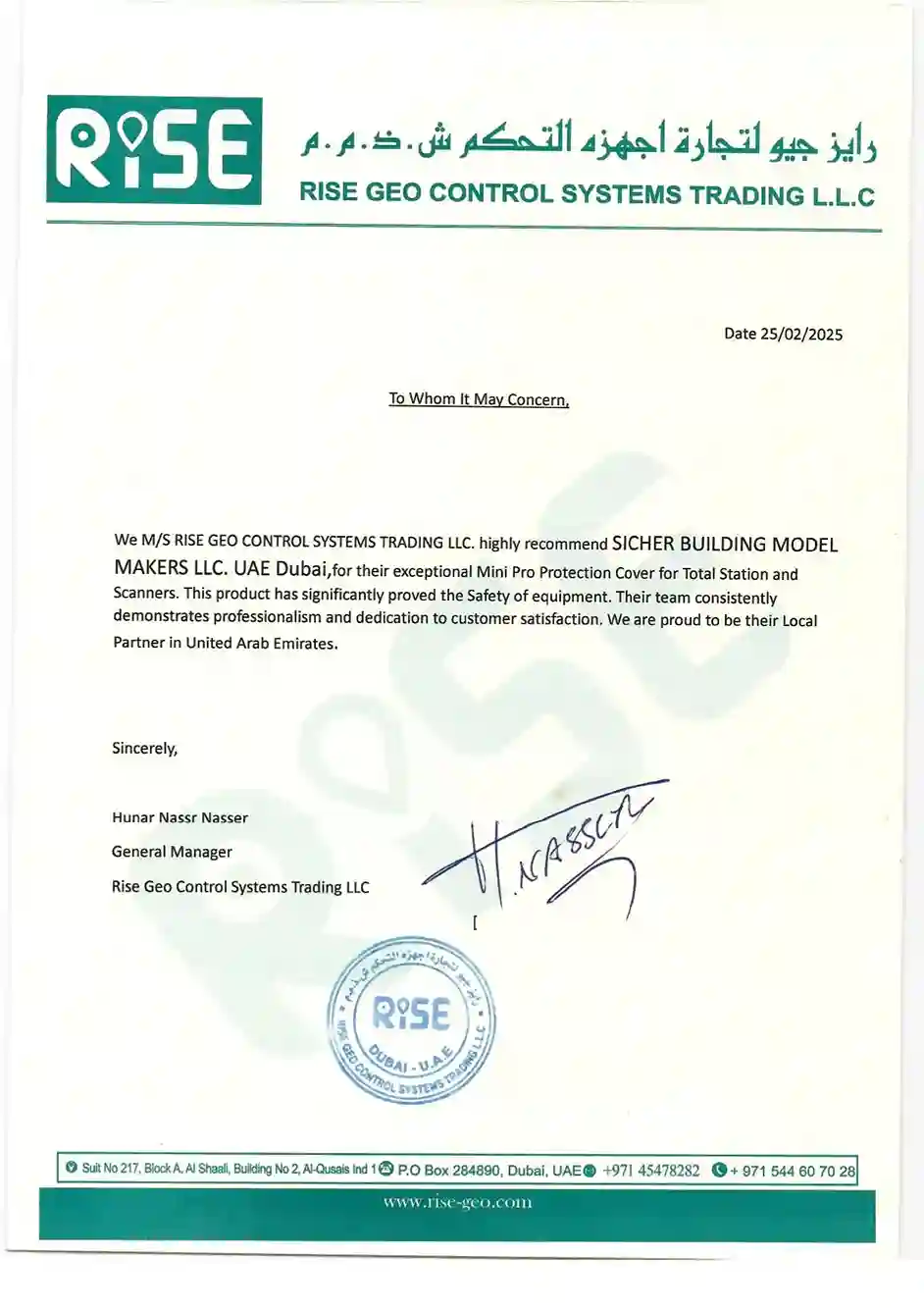 Thank you, Rise Geo Control Systems Trading LLC, for being a valued partner in the United Arab Emirates!